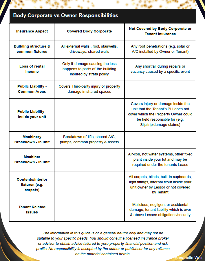 Body corporate (strata) insurance is designed to protect common property and shared assets – not your personal financial exposure as a property owner. That distinction is where most problems begin.