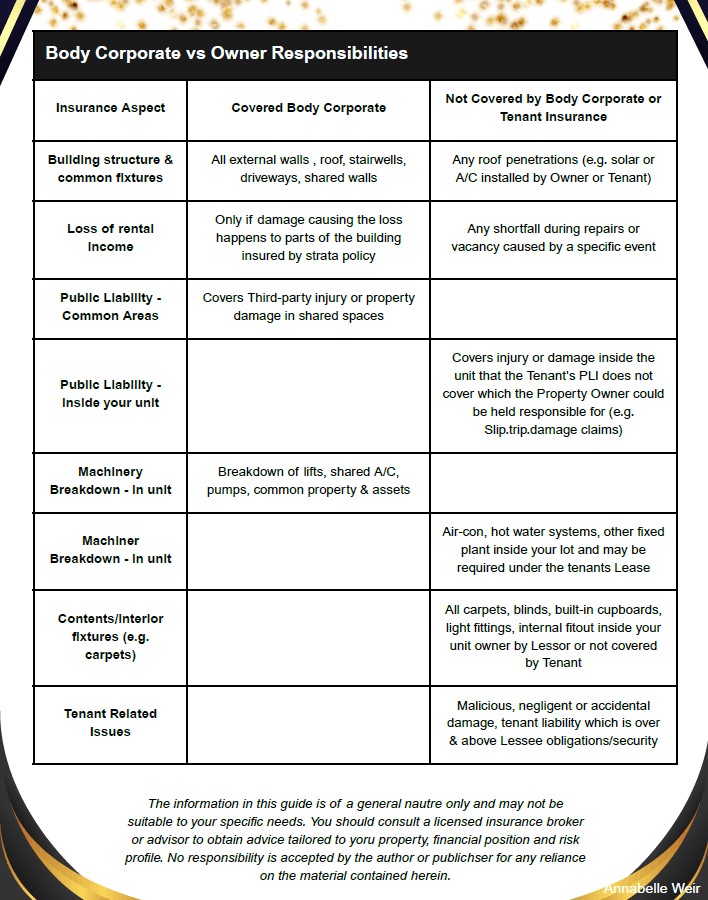Body corporate insurance is essential but it is not complete protection for you as an owner.