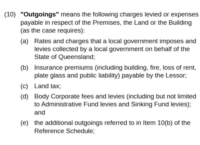 - An Outgoings Definition in the Terms and Conditions which limits what Outgoings are